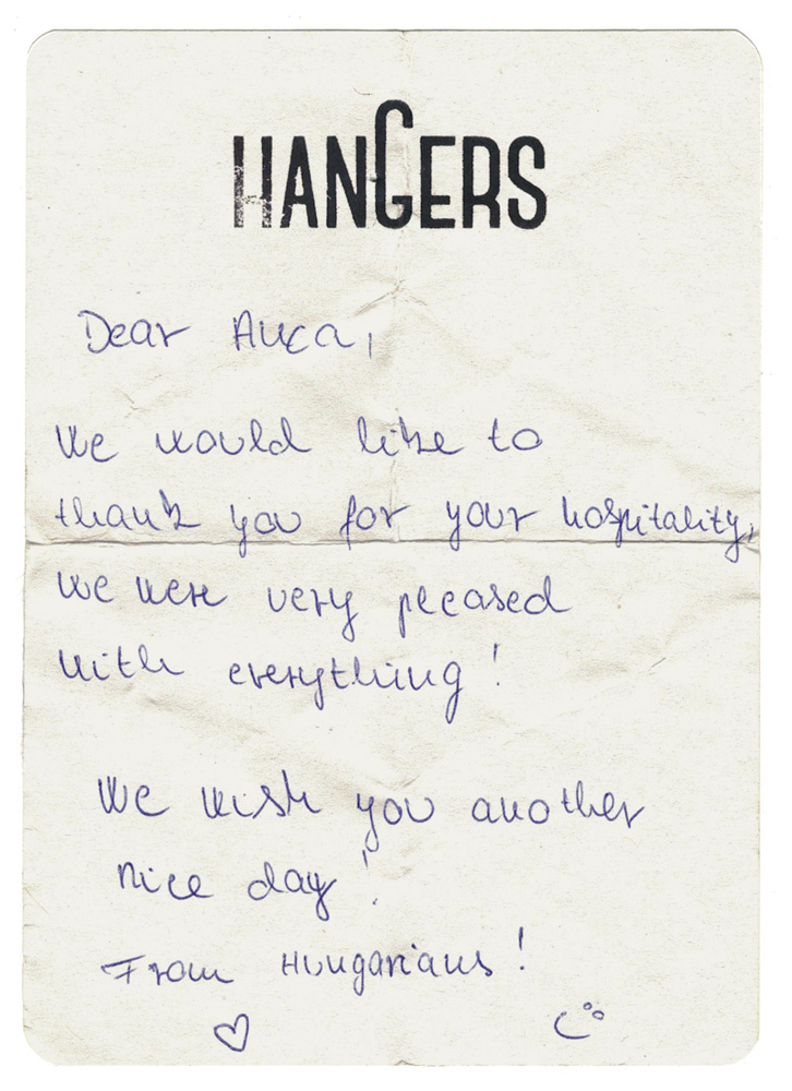 Ca-n viață, când oferi, primești: câteva mici coli cu antet se află pe biroul din fiecare cameră. În timp, mulți oaspeți le-au folosit ca să ne spună câte ceva. Le păstrăm cu sfințenie.